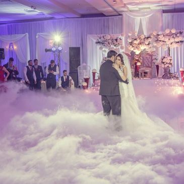 Dry ice is a popular and captivating effect that adds a touch of enchantment to any wedding. It creates a low-lying, misty fog that gives off an ethereal, fairy-tale vibe. Commoly used for Entrance, First dance & Cake cutting.